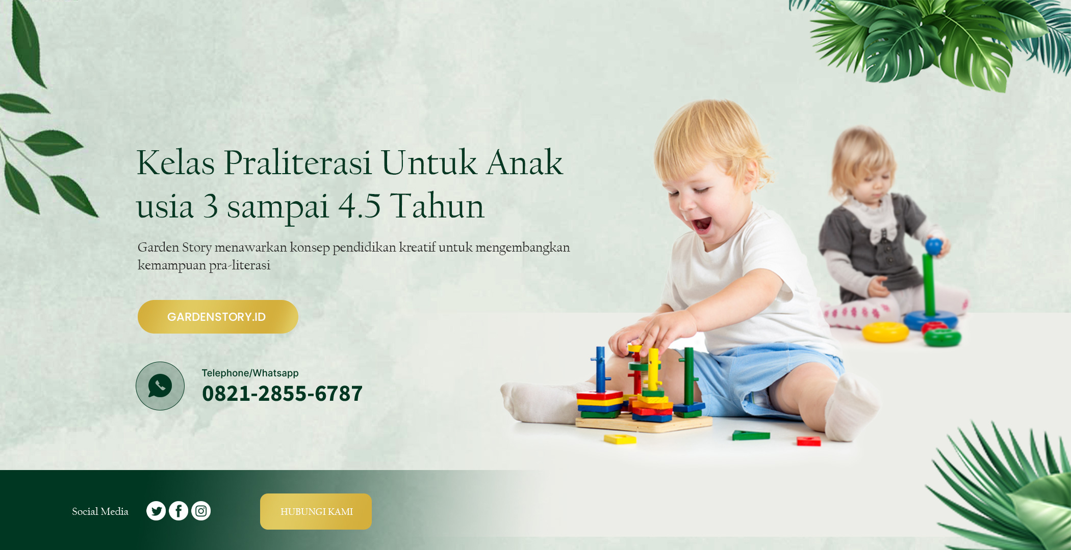 Garden Story adalah playgroup modern di Bekasi yang menghadirkan konsep belajar inovatif untuk anak usia 3 – 4.5 tahun. Dengan metode fun learning berbasis Kurikulum Merdeka, kami membantu anak mengembangkan keterampilan praliterasi, sosial, dan emosional dalam lingkungan yang hangat dan menyenangkan. Di sini, anak-anak tidak hanya belajar mengenal huruf dan kata, tetapi juga membangun rasa percaya diri, kreativitas, serta kecintaan terhadap eksplorasi dan pengetahuan.